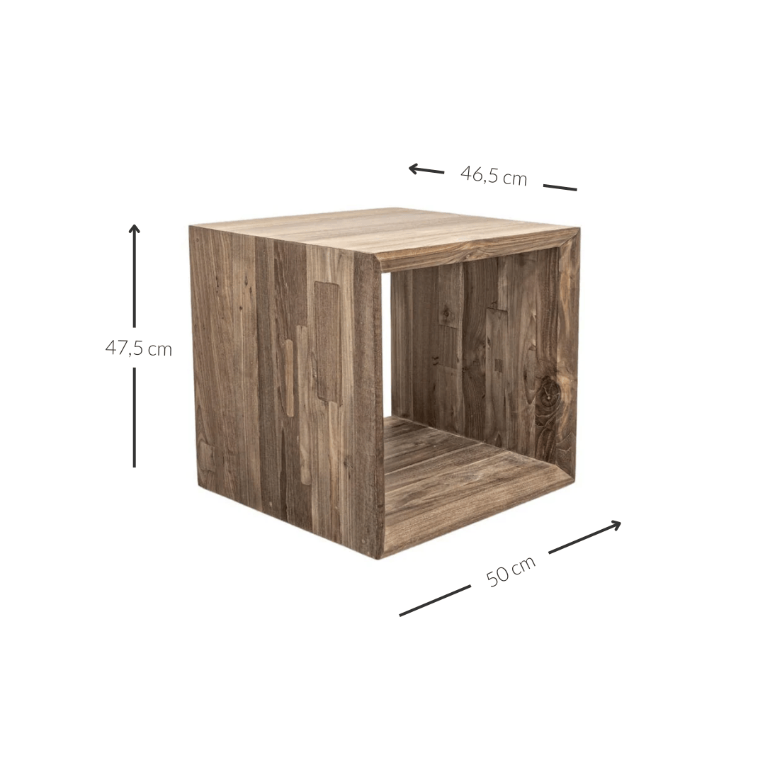 Handcrafted in solid teak wood, its cube-shaped silhouette brings originality to any room. Use it as a bedside companion, place it next to a sofa, or style it as a decorative stand to showcase your favourite objects.