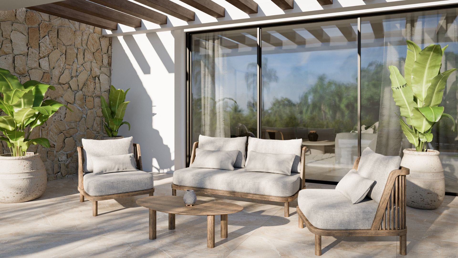 Mobiliario exterior zona lounge y comedor
